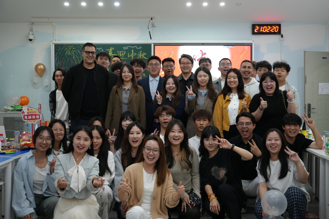 活动现场,学院领导班子走进各个班级,为同学们送上节日祝福,并贴心赞助活动美食。各班精心布置的场地特色鲜明,洋溢着温馨欢乐的气氛;中英文双语主持展现国际化特色,诗朗诵、乐器演奏、歌曲演唱等精彩节目轮番上演,让同学们提前感受双节的喜悦。值得一提的是,学院领导与老师们纷纷登台献艺,与同学们亲密互动,实现了师生间的深度融合。同学们热情参与互动,在交流中增进了彼此了解。